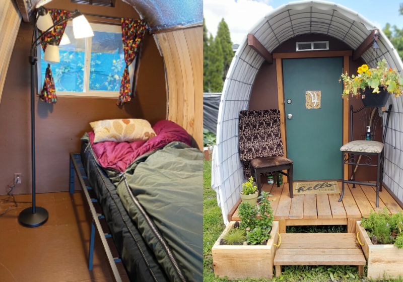 As estruturas, chamadas de Conestoga Huts, podem ser montadas em poucas horas. A proposta surgiu a partir de uma organização local e ganhou apoio da comunidade, que contribuiu com doações para viabilizar o projeto.