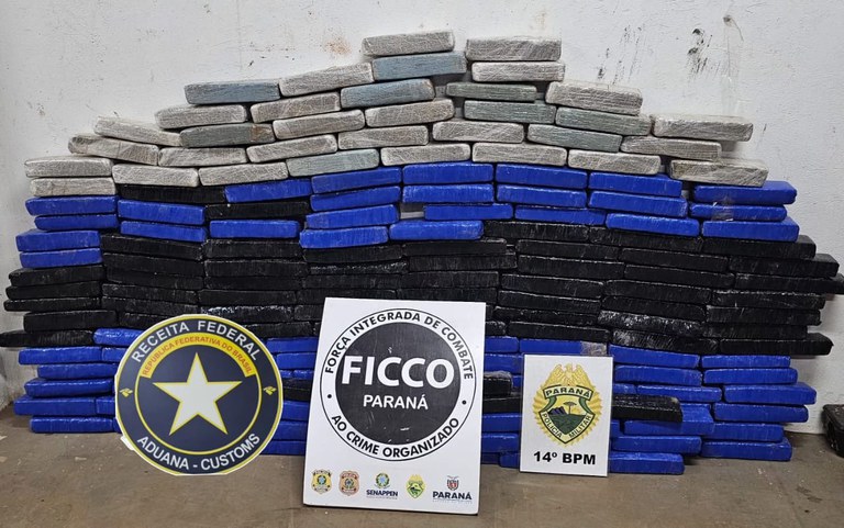 A Força Integrada de Combate ao Crime Organizado do Paraná (FICCO/PR), em ação conjunta com a Polícia Militar do Paraná, equipes do Batalhão de Polícia de Fronteira (BPFRON), ROCAM e POP do 14º BPM e Receita Federal, apreendeu, na manhã desta terça-feira (2/12), 105,6 kg de maconha e prendeu dois homens por tráfico internacional de drogas em Foz do Iguaçu/PR.