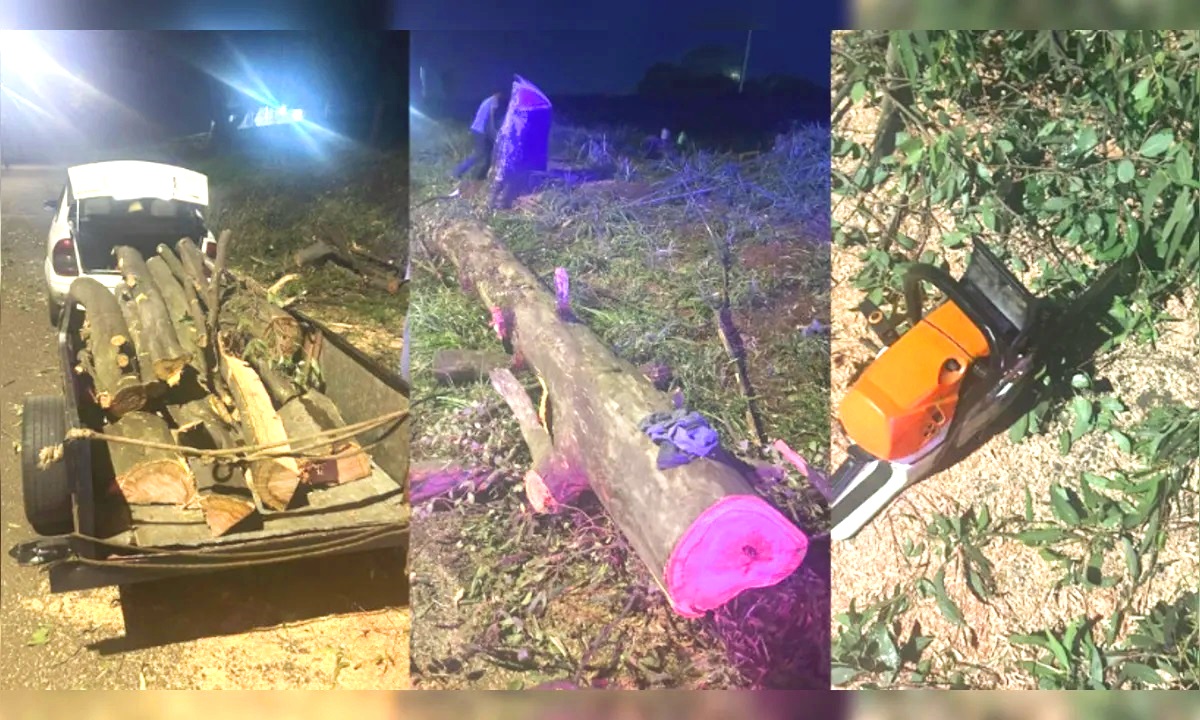 O homem estava acompanhado do filho, de 15 anos, e de outro adolescente, de 16. Questionado sobre a autorização para o corte, ele não apresentou documento emitido pela Secretaria Municipal de Meio Ambiente (Sema) que permitisse a supressão da árvore.