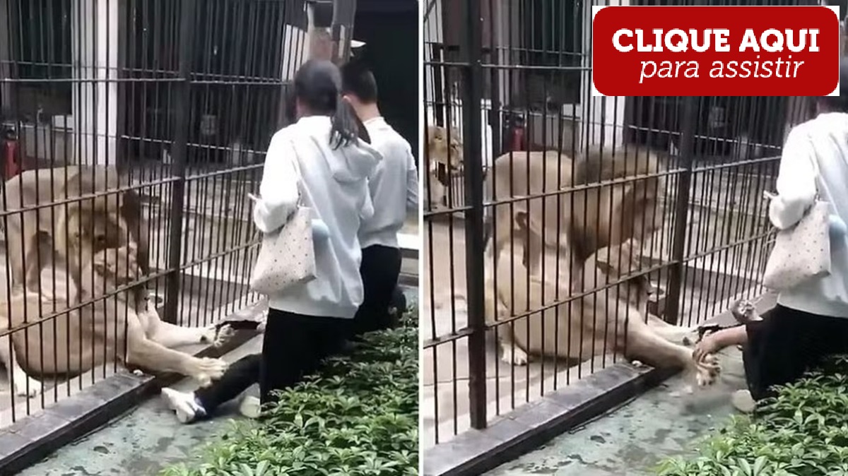 As imagens mostram a criança muito próxima às barras da jaula dos leões, quando uma das leoas estendeu a pata e segurou a perna ou a roupa da menina, tentando puxá-la.