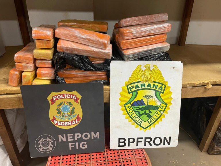 A Polícia Federal e a Polícia Militar do Paraná apreenderam, na última sexta-feira (14/11), 43 kg de maconha prensada às margens do Rio Paraná.