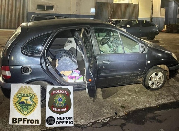 Policiais federais, em ação conjunta com policiais militares, apreenderam um veículo carregado com cigarros eletrônicos de origem estrangeira, nesta terça-feira (24/3), em Foz do Iguaçu.
