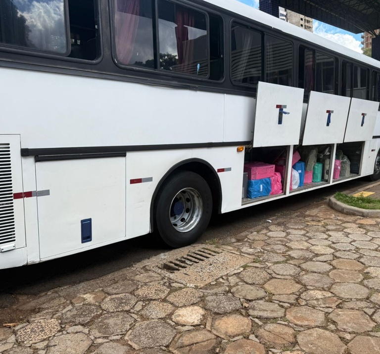 As equipes abordaram um ônibus após denúncias de transporte de ilícitos, contando com o apoio da PRF local para a interceptação do veículo.