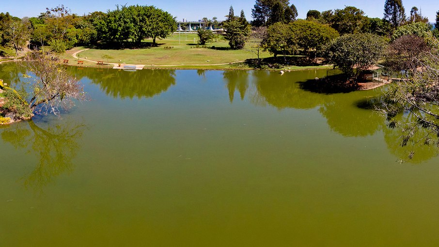 No centro desse cenário está a escultura "As Iaras", em bronze, do artista Alfredo Ceschiatti.