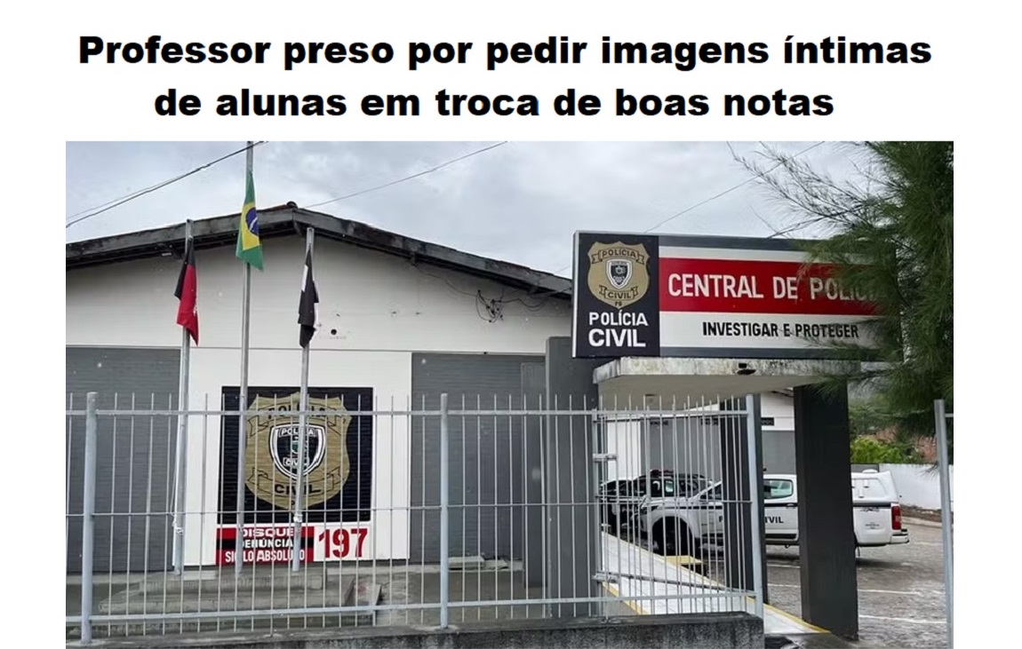 Um professor foi preso em Guarabira, no Brejo da Paraíba, suspeito de assediar sexualmente estudantes menores de idade. Segundo a Polícia Civil, ele usava sua posição nas escolas para oferecer vantagens acadêmicas em troca de imagens íntimas. O caso gerou grande repercussão após áudios comprometedores circularem nas redes sociais.